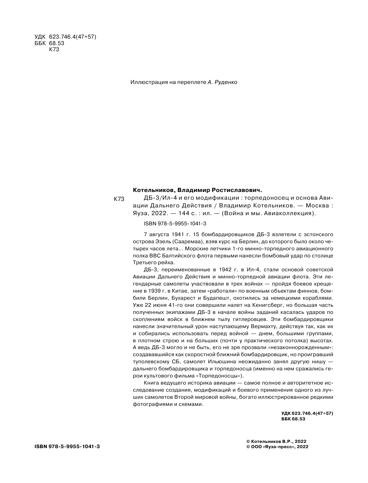 ДБ-3/Ил-4 и его модификации. Торпедоносец и основа Авиации Дальнего Действия (Владимир Котельников); Издательство Яуза ООО, 2022
