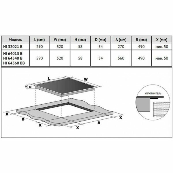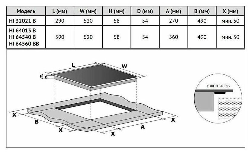 | Правая дальняя конфорка (мм/кВт) | 180/1.8-2.1 |