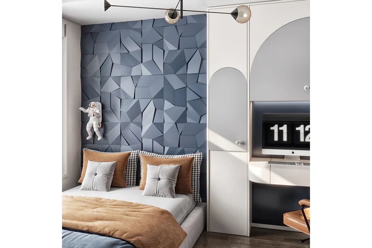 Идеальные линии и четкие формы используются в технике оригами. В настоящее время это модный и современный тренд. 3D панели ROCK как оригами-элементы гармонично впишутся в дизайн любого помещения. Геометрические фигуры составляют причудливо ломающееся полотно. Поворачивая панели при монтаже, можно достичь неповторимого эффекта ломающейся поверхности. 3D панель ROCK подойдёт как для современного минимализма, так и для лофта. С помощью материала этой серии можно декорировать нишу, выступ или всю стену.