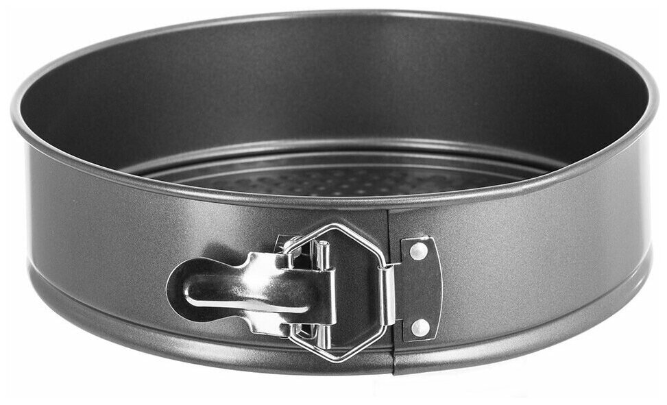 Круглая форма для выпечки — это прекрасный выбор для тех, кто любит и умеет готовить. Корпус выполнен из прочной и экологически чистой углеродистой стали с устойчивым к высоким и низким температурам антипригарным покрытием — идеальное сочетание свойств для чизкейков и тортов с кремом. Жидкое тесто не пригорит и не прилипнет к стенкам, а благодаря разборной конструкции с пружинным механизмом вы легко отсоедините дно и без труда достанете готовое изделие. Простой ручной уход с возможностью мыть в посудомоечной машине добавляют плюсов к выбору этого кухонного аксессуара.