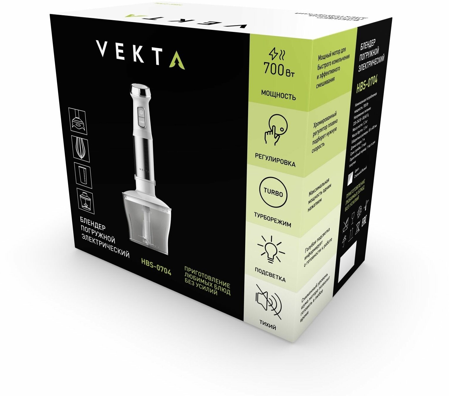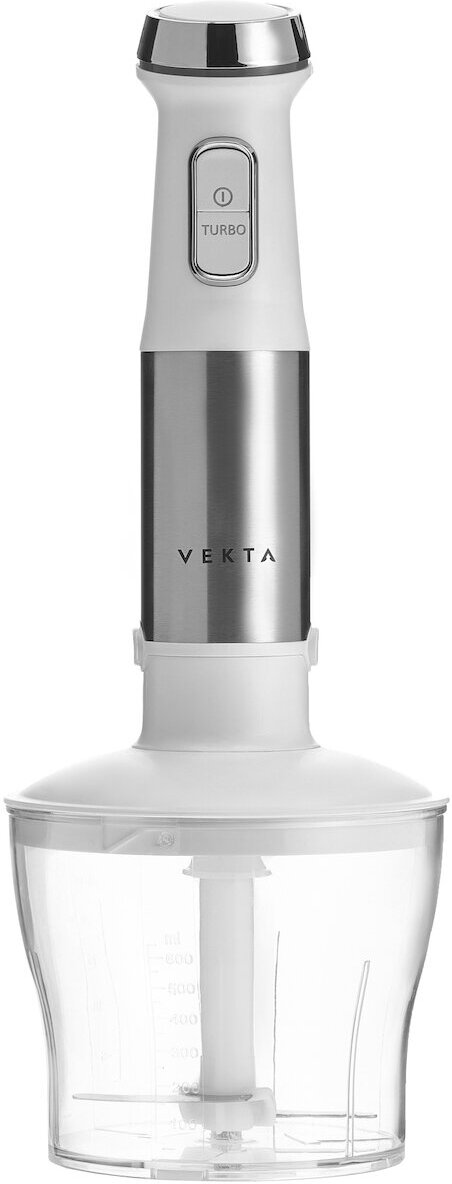 Погружной блендер VEKTA HBS-0704 оснащен мощным мотором для быстрой и эффективной обработки продуктов. Необходимый режим работы подбирается легким движением одного пальца, с помощью плавного переключателя скорости, декорированного хромом, а кнопка ТУРБО моментально переключит скорость на максимальную. Основная часть корпуса выполнена из металла и матового пластика, что делает его прочным и надежным в использовании. При включении в сеть, регулятор скорости и основные кнопки подсвечиваются красным светом. Модель укомплектована венчиком для взбивания, удобным измельчителем на прорезиненных ножках и объемным мерным стаканом. Погружная часть блендера с ножами изготовлены из высококачественной нержавеющей стали.