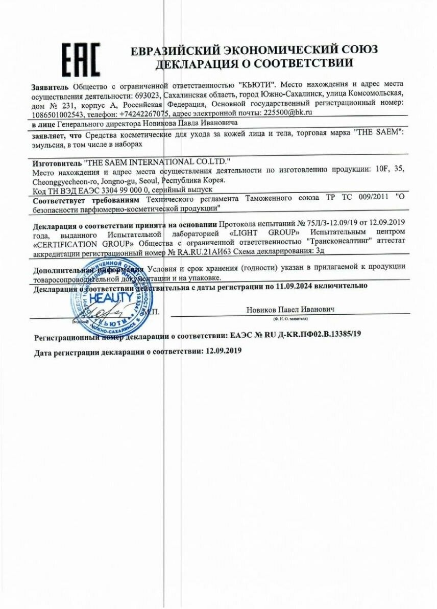 | Фирма-производитель | The Saem International Co.,Ltd. |