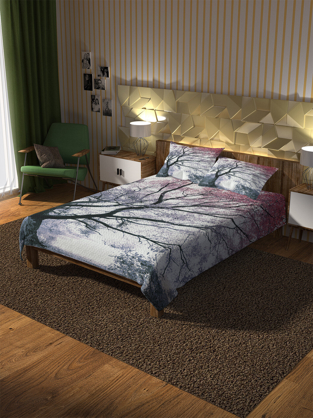 Под брендом JoyArty Вы можете подобрать шторы в одном дизайне с покрывалом, что позволит создать единый стиль вашей спальни.