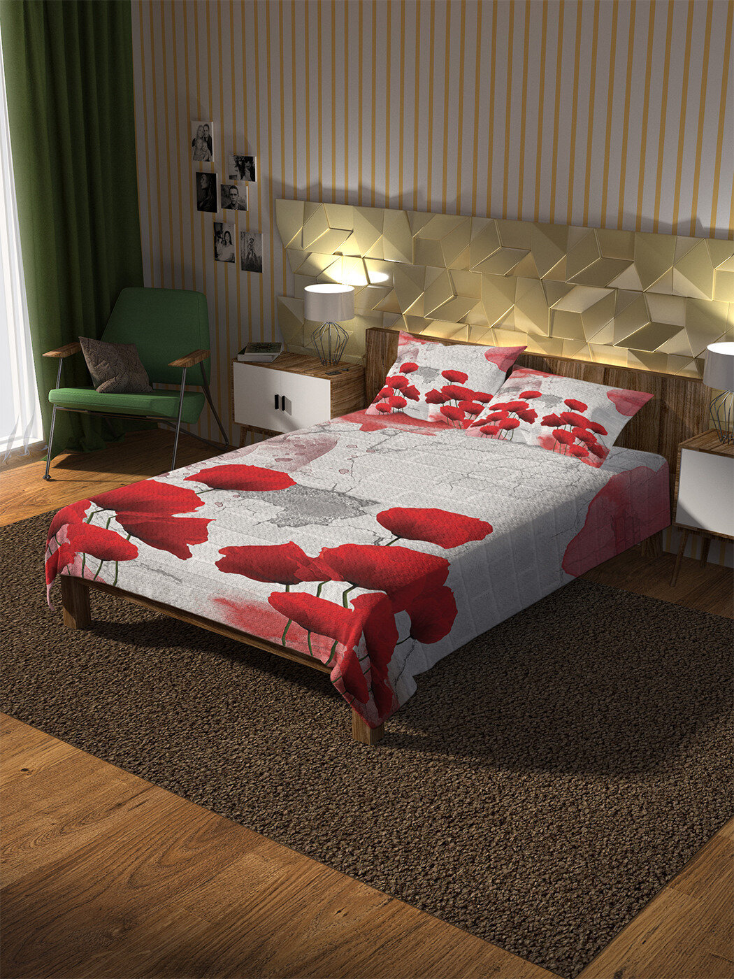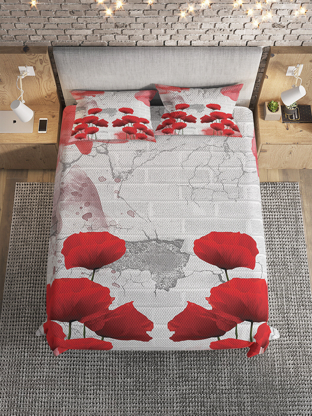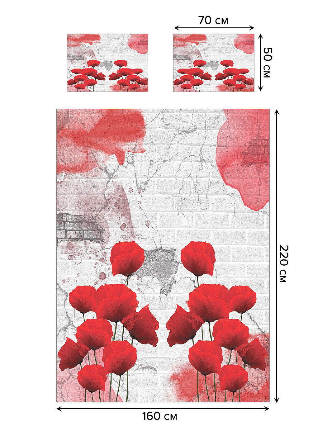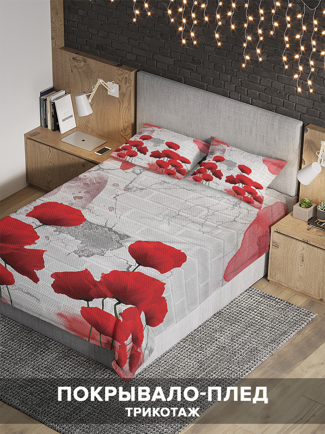 Модель: Покрывало на 1.5-спальную кровать Уличный мак 220х160 и две наволочки 70x50