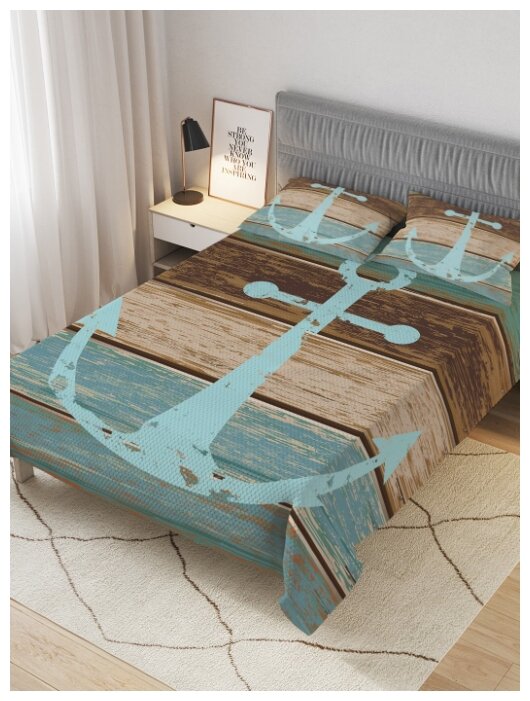 Модель: Покрывало на 1.5-спальную кровать Потертый якорь на досках 220х160 и две наволочки 70x50