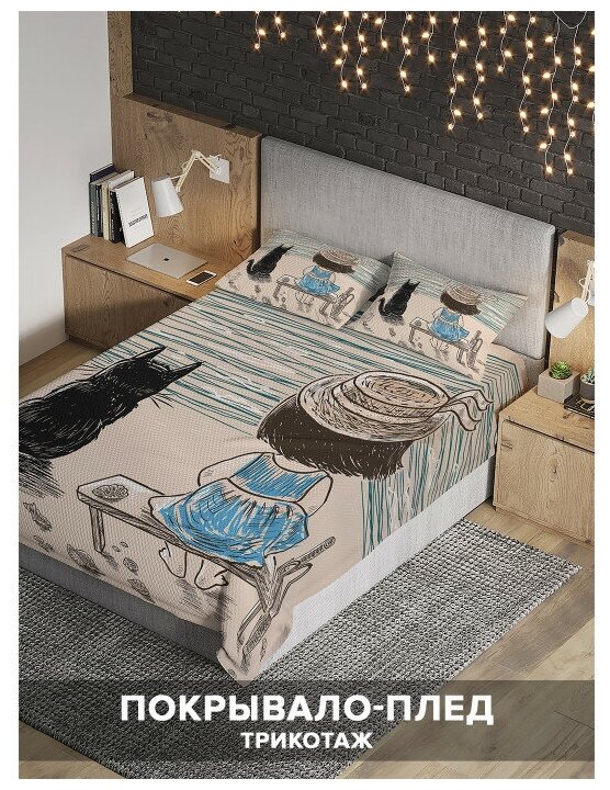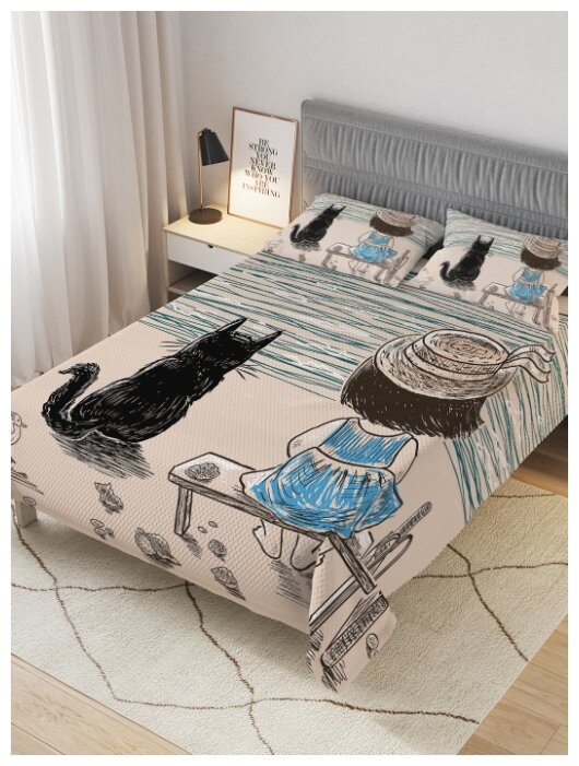 Модель: Покрывало на 1.5-спальную кровать Девочка с котом на берегу реки 220х160 и две наволочки 7