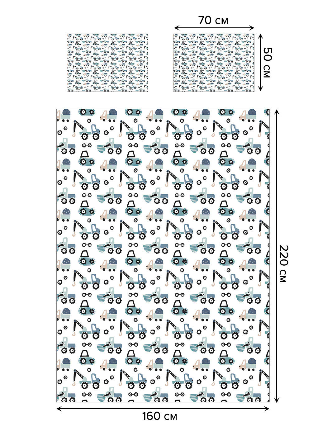 Модель: Покрывало на 1.5-спальную кровать Забавные Экскаваторы 220х160 и две наволочки 70x50