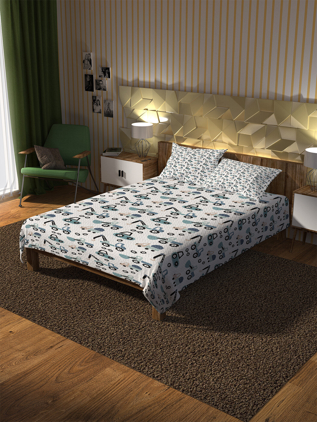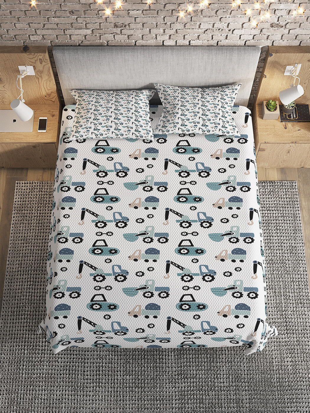 Покрывало с чехлами Ambesonne bcsl_71079 160x220 см голубой Покрывало на 1.5-спальную кровать Забавные Экскаваторы 220х160 и две наволочки 70x50 (размер: 1.5-спальный)