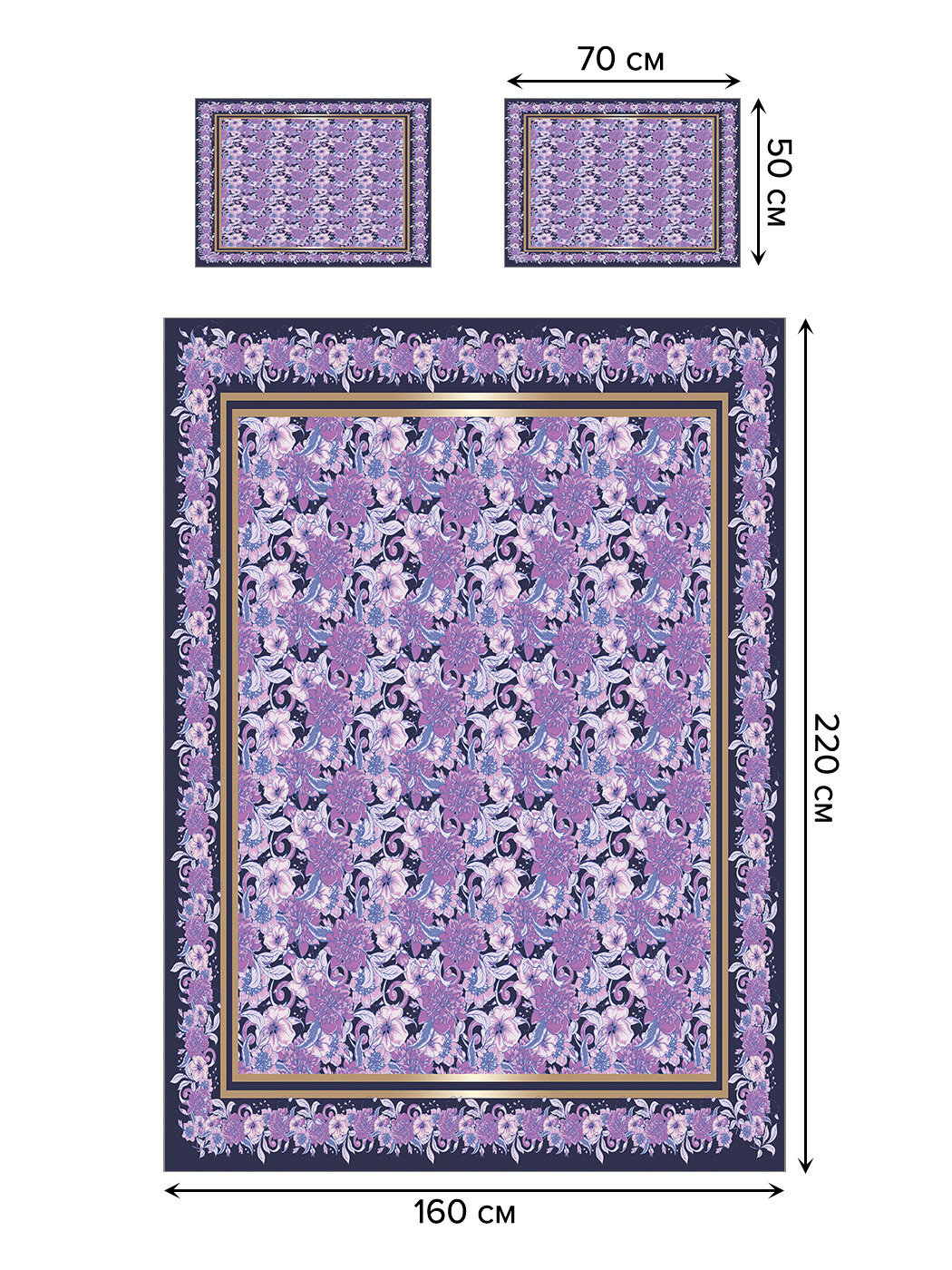 Покрывало с чехлами Ambesonne bcsl_78043 160x220 см фиолетовый Покрывало на 1.5-спальную кровать Цветочный орнамент 220х160 и две наволочки 70x50 bcsl_78 (размер: 1.5-спальный)