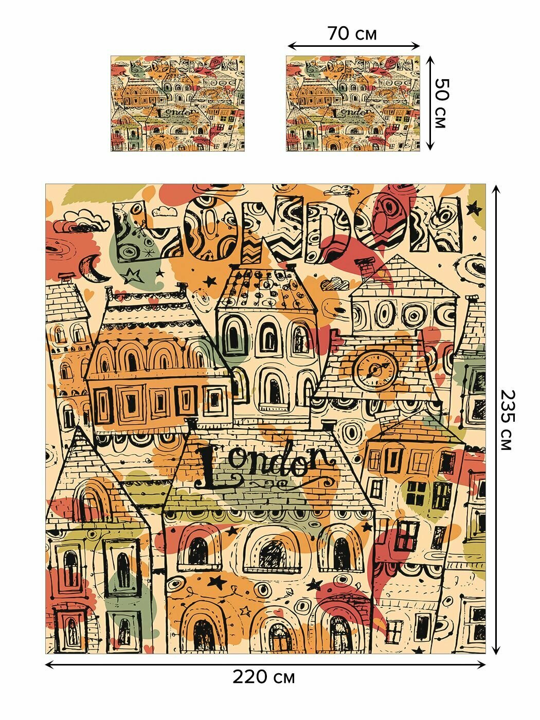 Модель: Покрывало на 2-спальную кровать Лондонский район 235х220 и две наволочки 70x50