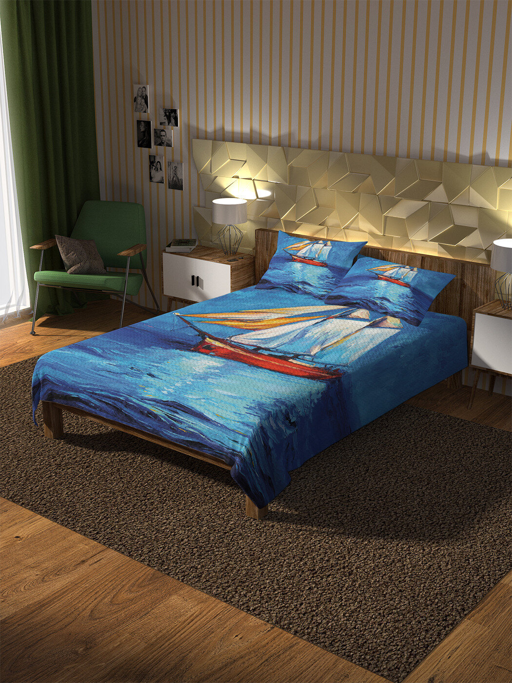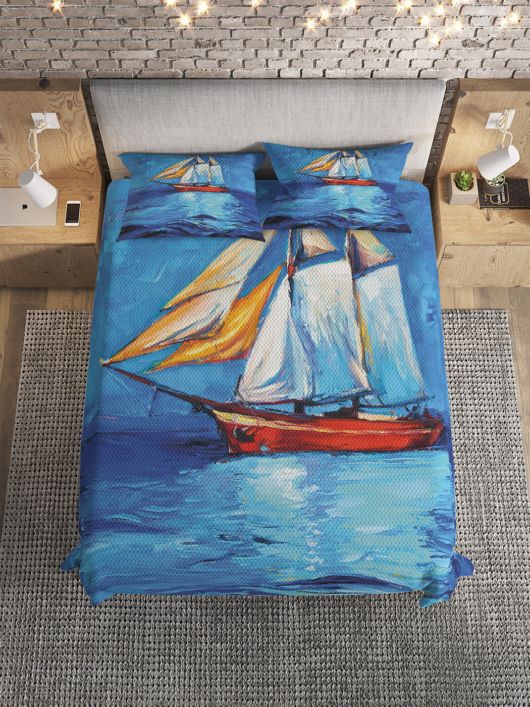 Модель: Покрывало на 1.5-спальную кровать Корабль в море 220х160 и две наволочки 70x50