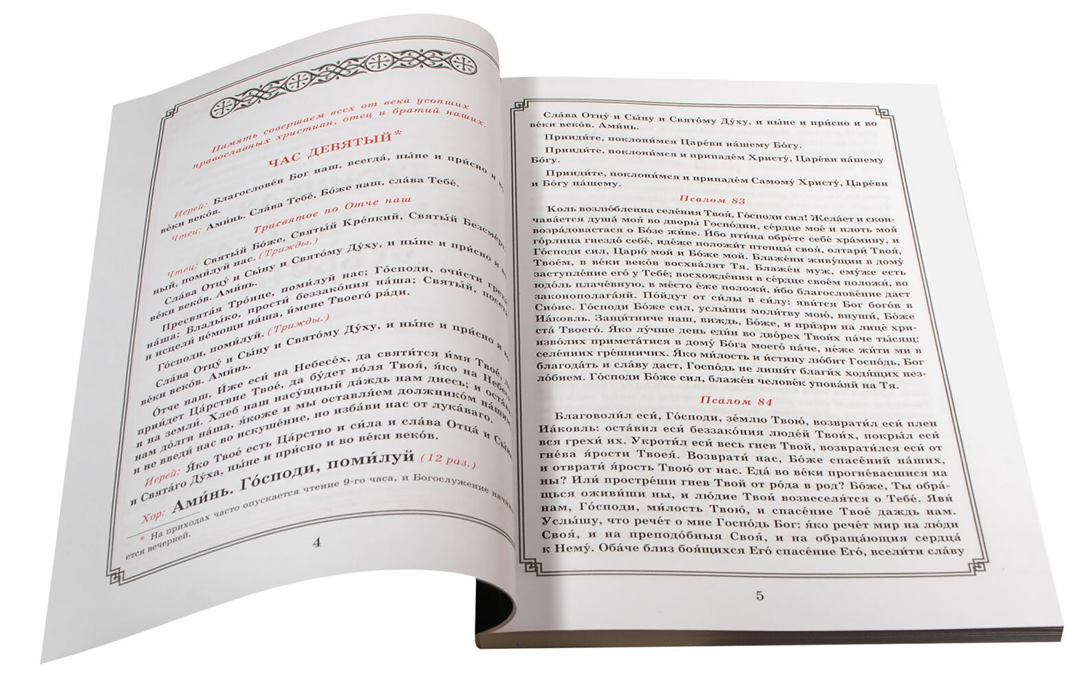 Двухцветная печать, традиционная для богослужебных изданий, облегчает визуальное восприятие.