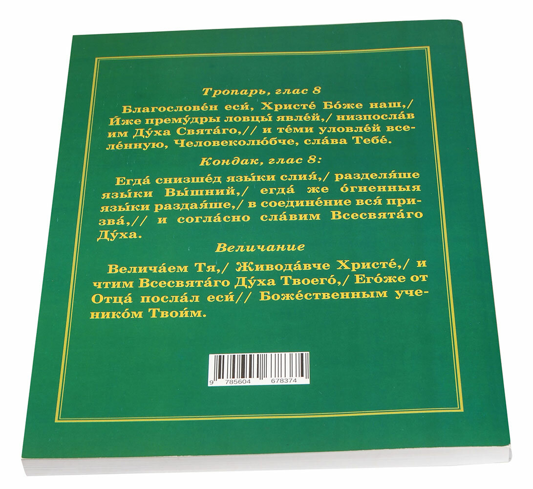 В первой части книги содержится последование заупокойного богослужения в Троицкую родительскую субботу. Во второй части: всенощное бдение праздника Пятидесятницы, измяенемые песнопения Литургии и вечерня с исследованием коленопреклонения.