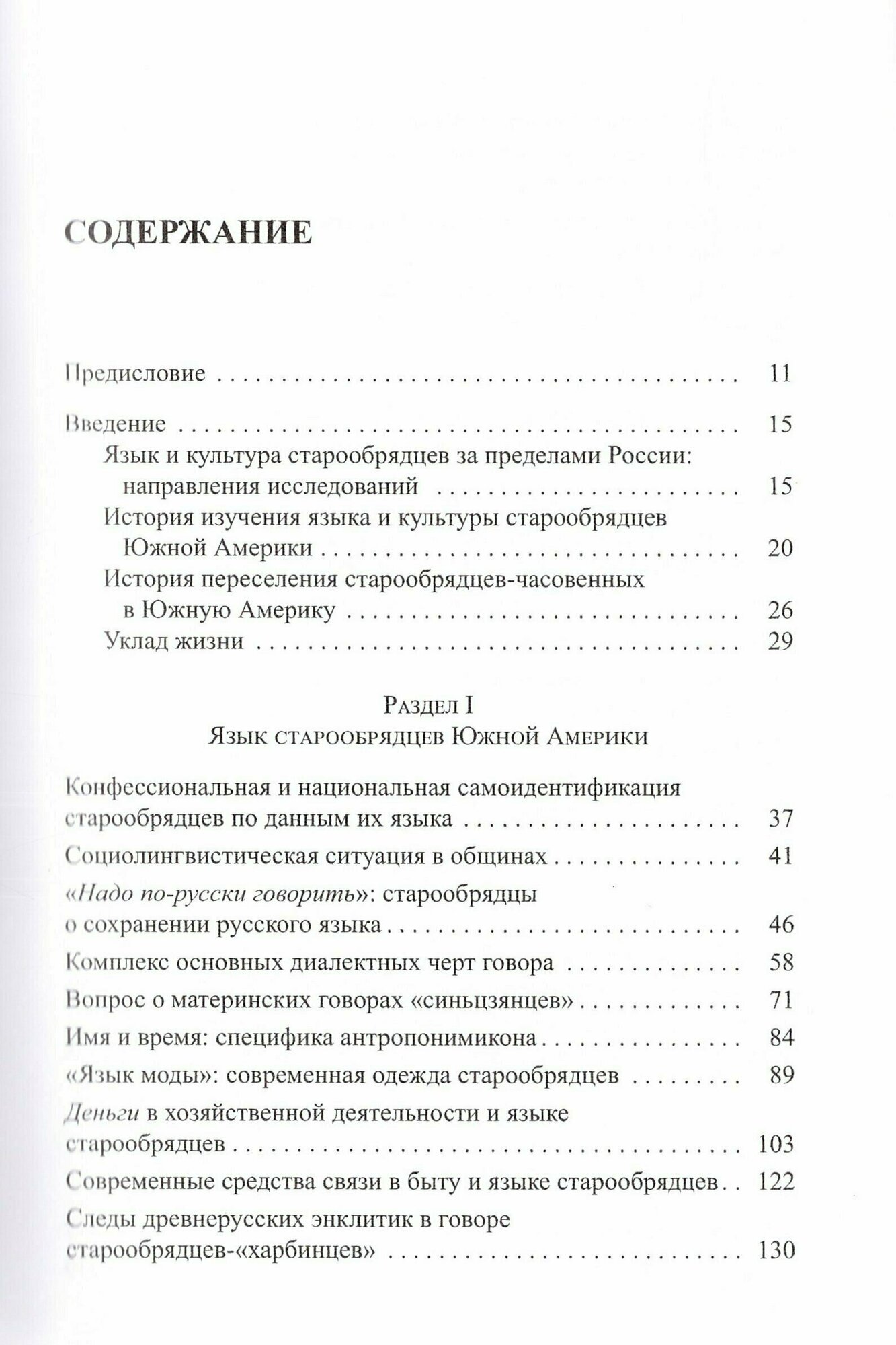 В монографии представлены некоторые результаты изучения истории, культуры и русского диалектного языка старообрядцев-часовенных, проживающих в Аргентине, Боливии, Бразилии, Уругвае. Полевые исследования начаты в 2006 г. в ИРЯ РАН по инициативе автора. Центральное место занимают очерки, посвященные разным аспектам русского диалектного языка старообрядцев. В монографию включен фрагмент будущего «Словаря говора старообрядцев Южной Америки». Книга адресована специалистам в области старообрядчества и читателям, интересующимся историей России и русского языка.