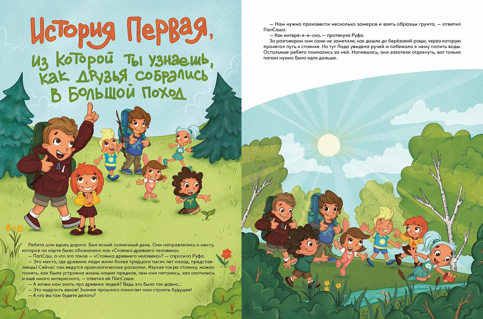 Пятеро друзей - Выша, Лада, Веля, Леля и Руфа - собрались в лесной поход со своими папами. Все они по-своему предвкушают это приключение, ведь занятие по душе найдётся каждому! Кто-то будет пополнять свою коллекцию диких растений, кто-то купаться, а кто-то исследовать окружающую местность. Вместе с главными героями читатели узнают, что нужно взять с собой в поход, как ставить палатку, какие дары леса можно есть, а какие лучше не стоит, что делать, если вдруг потерялся. А ещё в конце каждой главы есть специальный раздел для родителей, который поможет понять, как распознать разные интересы детей, поддержать их и создать возможность для их реализации.