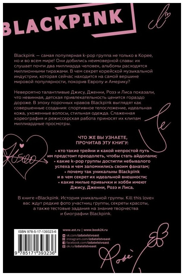 В книге «Blackpink. История уникальной группы. Kill this love» вас ждут редкие фото участниц группы, секреты красоты, а также тестовые задания на знание творчества и биографии участниц Blackpink.