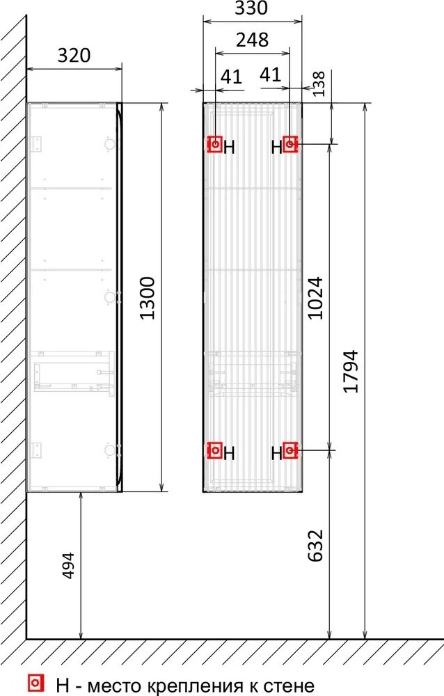 | Габариты без упаковки | 330х320х1300 |