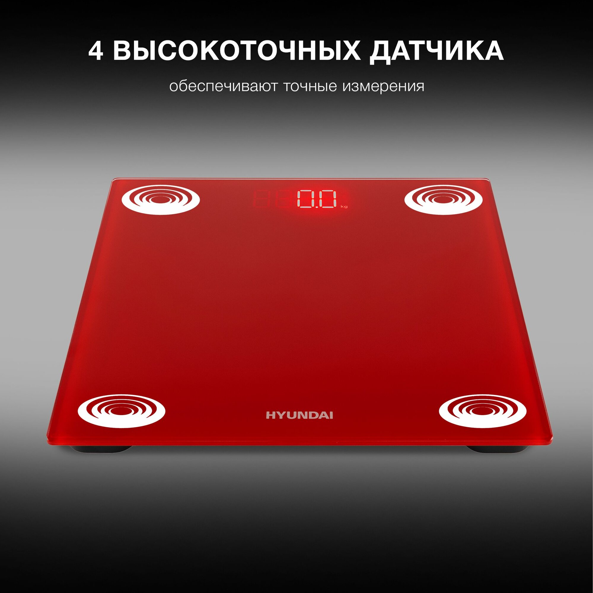| Прочие особенности и свойства | Электронные весы Hyundai H-BS03612 представлены в виде удобной платформы из закаленного стекла. Устройство представлено в яркой красной расцветке. Вес человека измеряется в килограммах с погрешностью всего 100 г., Прибор Hyundai H-BS03612 дополнен системами автовключения при касании и автоотключения при бездействии, что значительно экономит заряд элементов питания. Конструкция выдерживает нагрузку в 180 кг. Устройство весит 1.53 кг и обладает размерами 28x28x1 см, что позволяет хранить весы под кроватью или на узкой полочке. |