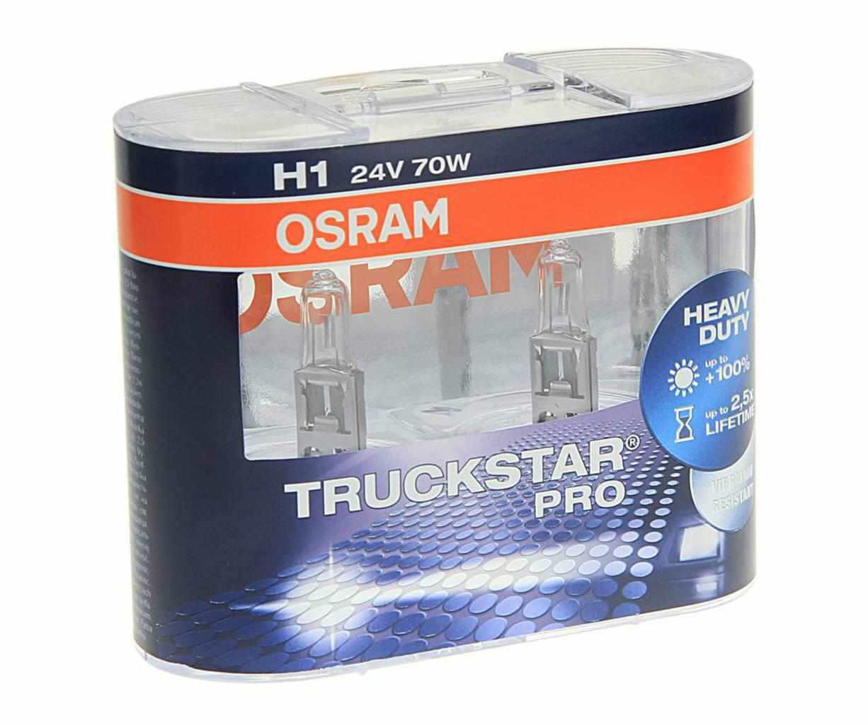 Лампа автомобильная OSRAM H1 70W P14.5s +100% Truckstar Pro 2шт 24V 64155TSP2