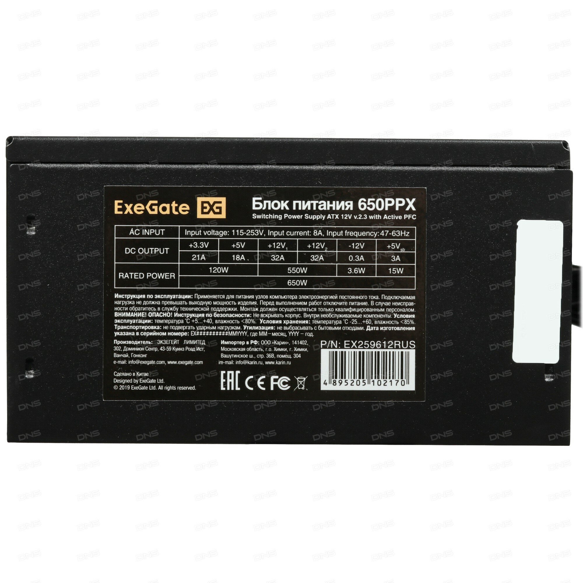 Блок питания ExeGate 650W ATX-650PPX (EX259612RUS)