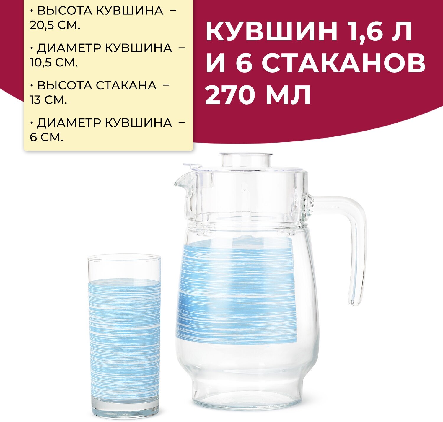 | Комплектация | Кувшин 1,6 л, стакан 270 мл - 6 шт |