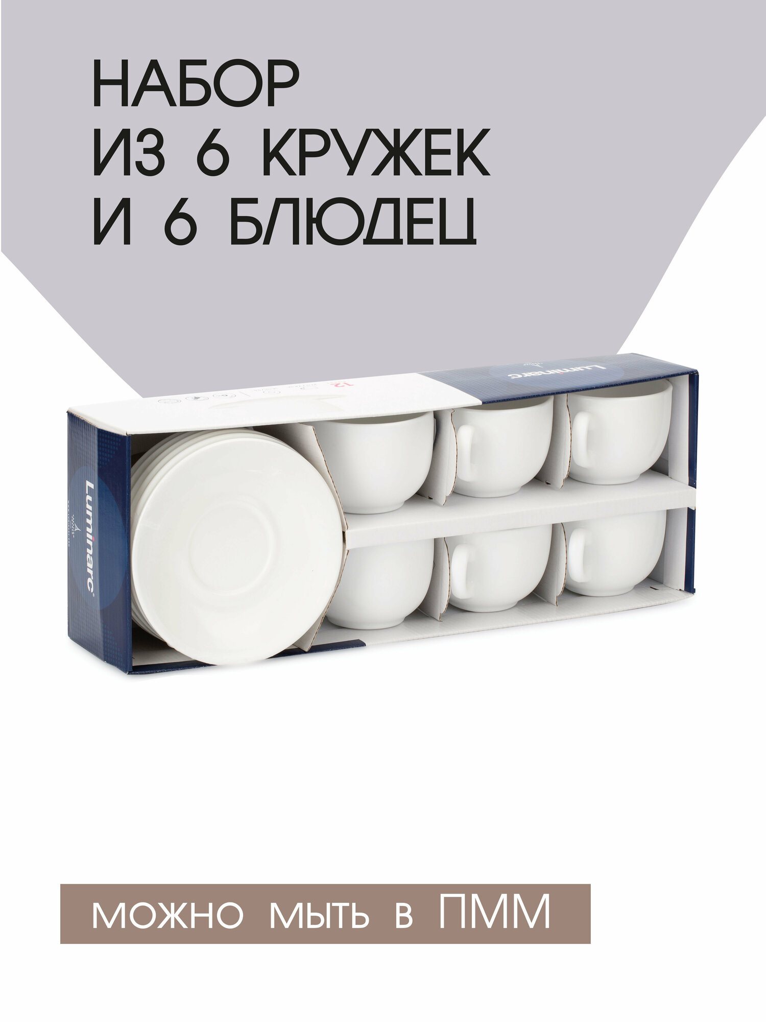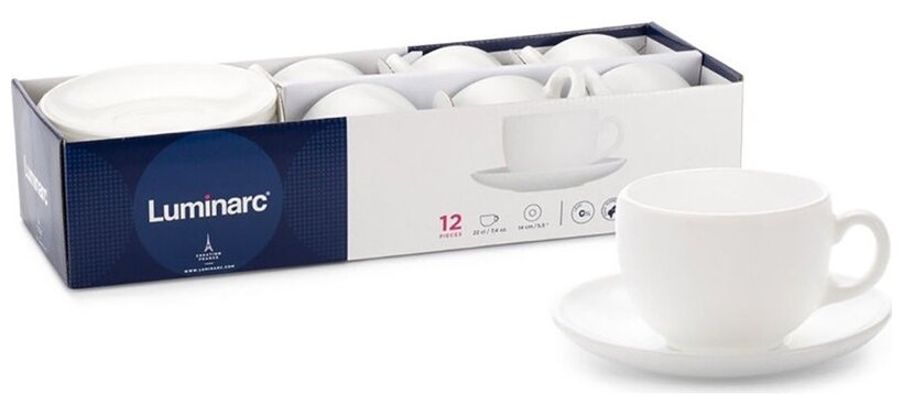 Чайный набор LUMINARC ЭССЕНС изготовлен из высококачественного ударопрочного стекла. Безупречная белизна опалового стекла, отсутствие рисунка позволяет отнести чайный набор к профессиональной посуде. Такой сервиз можно вписать практически в любую сервировку. Недорогой и практичный, может использоваться для ежедневного чаепития. Можно использовать в микроволновых печах и мыть в посудомоечных машинах. Сервиз рассчитан на 6 персон и включает 12 предметов: чашка 220 мл - 6 шт, блюдце - 6 шт.