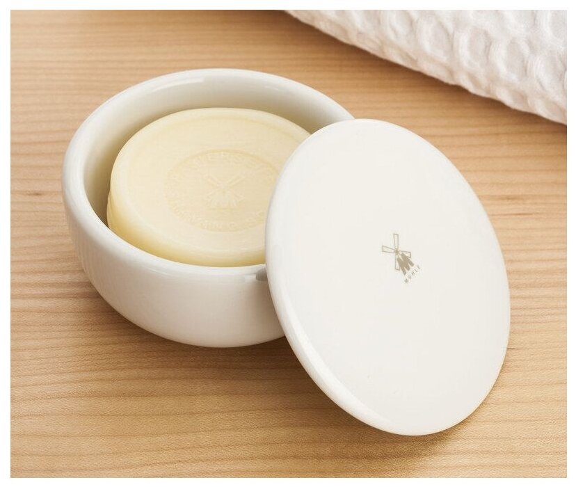 Твердое мыло для бритья MUEHLE в фарфоровой чаше, с нежным и деликатным ароматом Алоэ Вера. Мыло для бритья наилучшим образом подготавливает кожу и растительность лица для мягкого бритья, обладает смягчающим и глубоким увлажняющим эффектом.