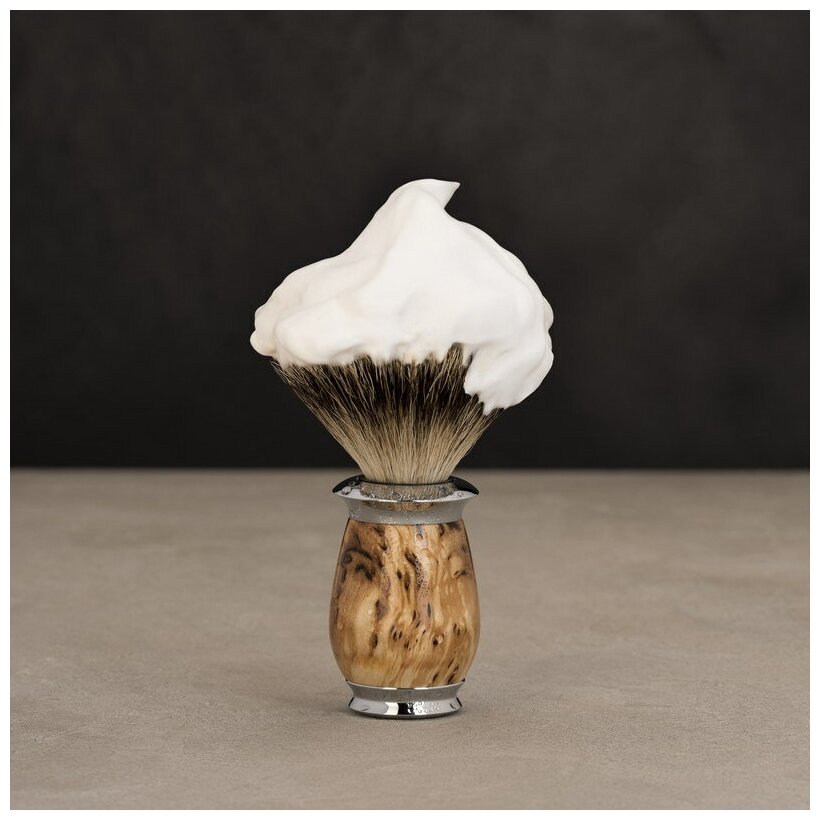 Натуральный барсучий ворс высшей категории Silvertip это самый лучший материал для помазка. Ворс Silvertip имеет характерный окрас: серебристый кончик и ярко выраженную темную полосу в середине. Этот материал используется для изготовления долговечных уникальных кистей с исключительными характеристиками и обрабатывается только вручную. Ворс Silvertip самый тонкий и обеспечивает наилучшее взбивание пены.