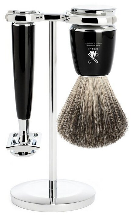 Бритвенный набор MUEHLE RYTMO черная смола натуральный барсучий ворс Т-образная бритва (S 81 M 226 SR)