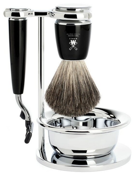 Бритвенный набор MUEHLE RYTMO черная смола натуральный барсучий ворс бритва Mach3 чаша (S 81 M 226 SM3)
