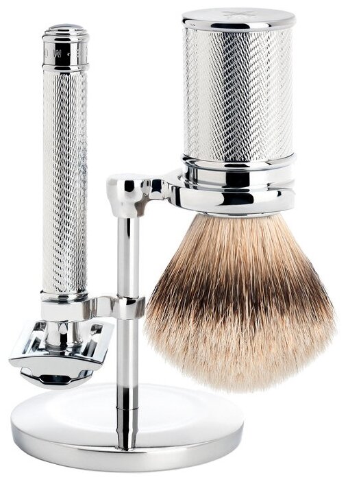 - Бритвенный набор MUEHLE TRADITIONAL, хром, барсучий ворс Silvertip, Т-образная бритва.