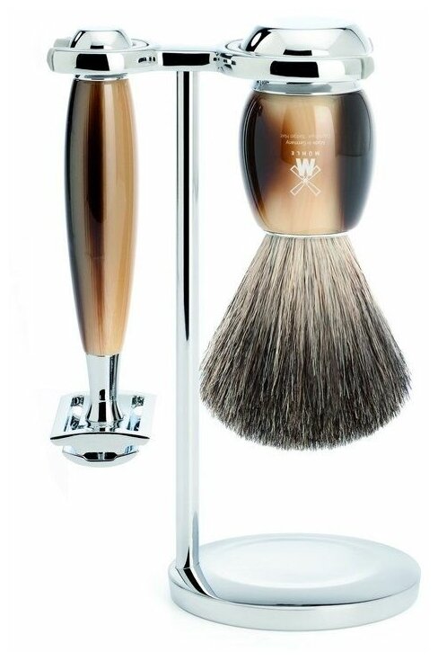 Бритвенный набор MUEHLE VIVO смола цвет рога натуральный барсучий ворс Т-образная бритва (S 81 M 332 SR)