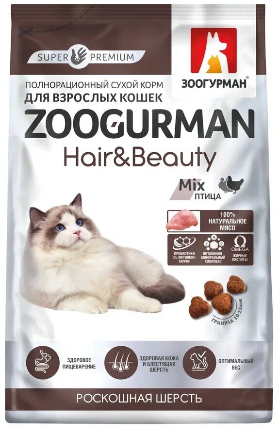 Модель: Корм сухой Зоогурман Hair&Beauty с птицей для кошек 1.5 кг