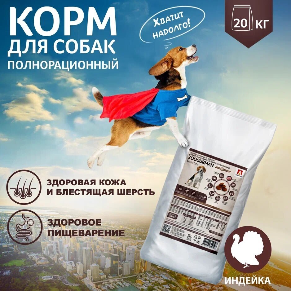 Daily Life для средних и крупных пород индейка сух. 22кг Зоогурман Полнорационный сухой корм д/с средних и крупных пород Zoogurman Daily Life, Индейка 2,2 кг