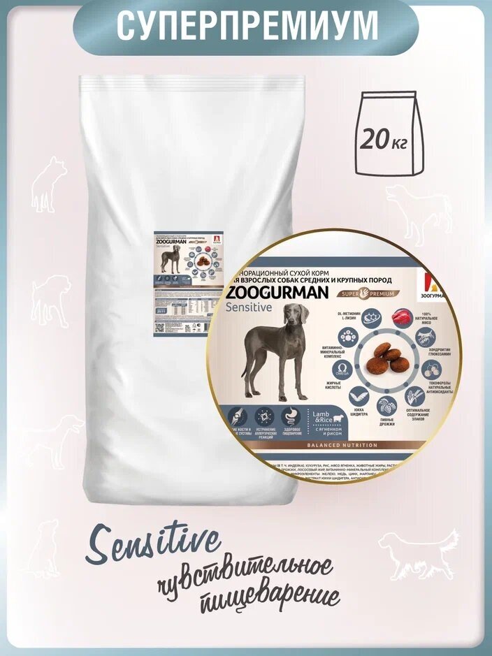 Модель: Полнорационный сухой корм д/с средних и крупных пород Zoogurman Sensitive, Ягненок с рисом 2,2 к