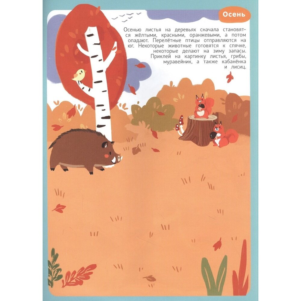 Хорошее развивающие пособие, включает в себя 65 крупных наклеек животных, птиц и растений, характерных для каждого времени года.