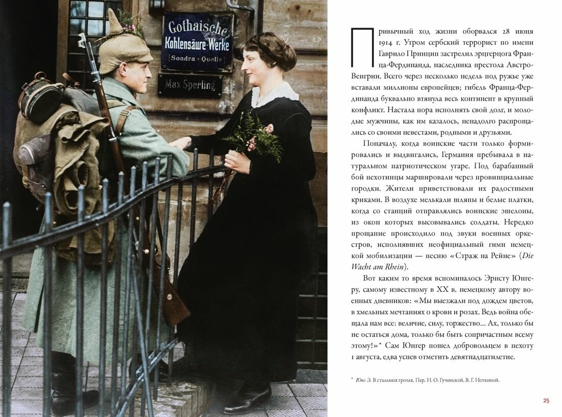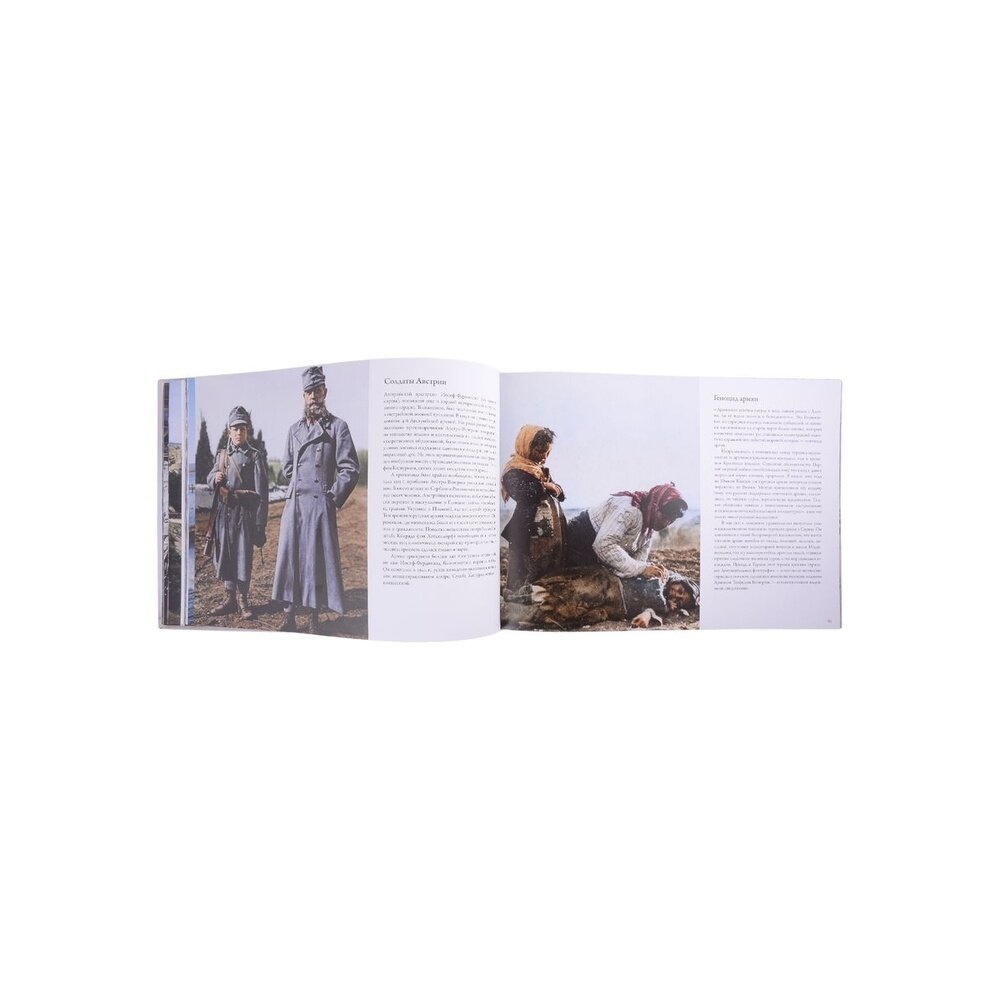 Книга была запечатана в заводскую пленку. Если бы мне при получении до оплаты удалось увидеть содержание, то я, возможно, отказался бы от покупки. Теперь об особенностях: 1) Нестандартная альбомная форма; 2) Качественная матовая мелованная бумага; 3) Цветные иллюстрации, - точнее разукрашенные черно-белые; 4) Две фотографии крайне жуткие и еще несколько просто жуткие. Зачем крупным планом размещать отрубленные женские головы в разрезе или растекшиеся мозги с дырками к голове. В общем, этот момент не для впечатлительных натур. Я как раз распечатал книгу после сытного ужина. 5) Некоторые фотографии не совсем созвучны теме. К примеру, гибель Лузитании сопровождается фото гробов, - а неплохо бы фото самого судна; 6) Качественное текстовое содержание хоть и небольшое по объему. Вывод. Если вас не смущает некоторое количество откровенно жестоких фото, то смело берите.