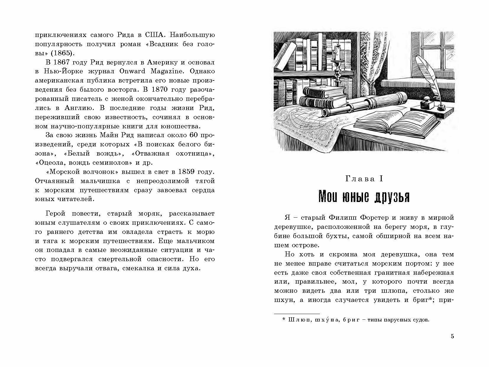 Английский писатель Томас Майн Рид (1818–1883) известен во всем мире как автор приключенческих романов. Его произведения переведены на французский, немецкий, итальянский, испанский, шведский, русский и даже на один из языков американских индейцев. «Морской волчонок» вышел в свет в 1859 году. Отчаянный мальчишка с непреодолимой тягой к морским путешествиям сразу завоевал сердца юных читателей.