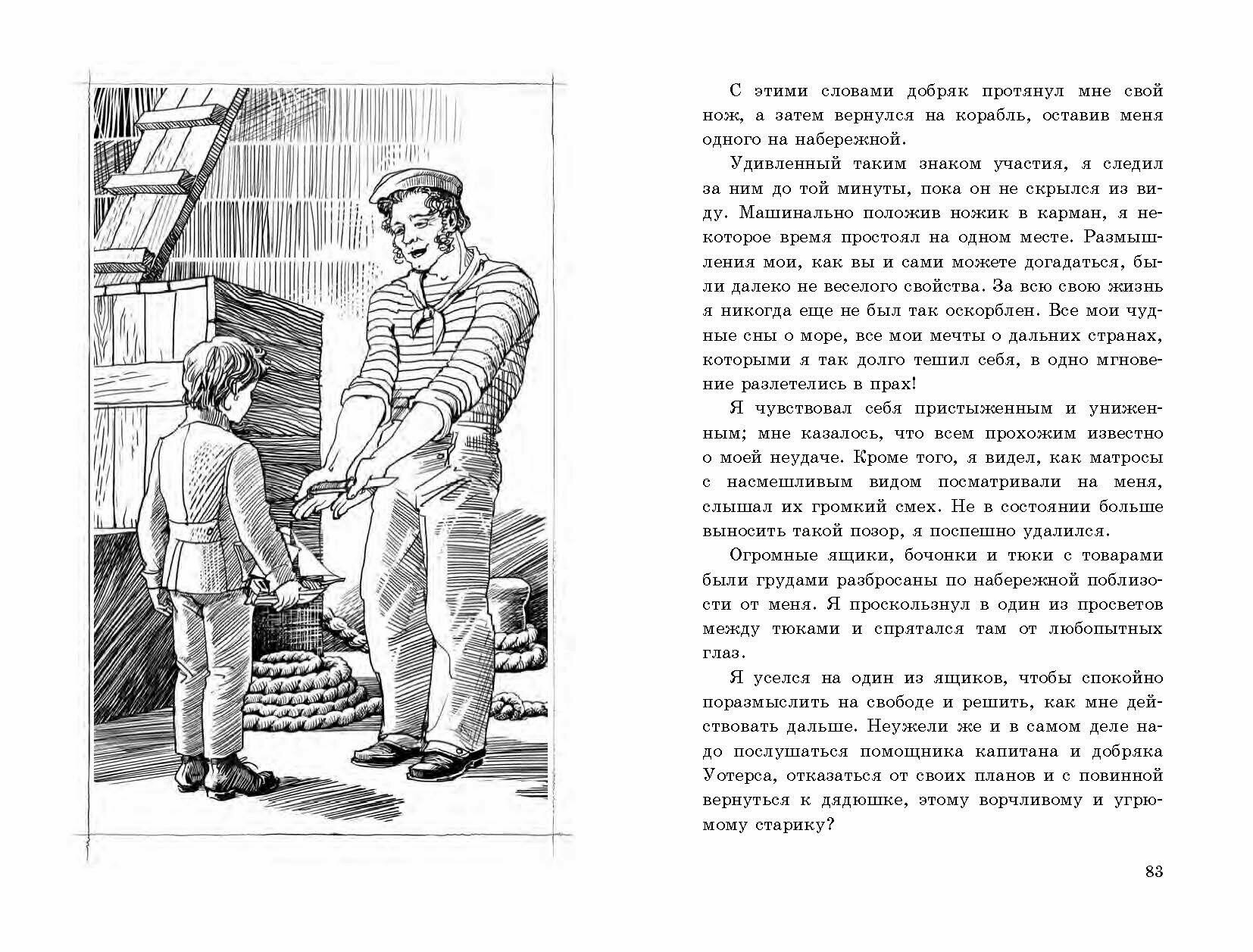 Не советую. Читать пол книги, как мальчик сидел в трюме и измерял бочку, сколько осталось воды и хлеба и боролся с крысами... Вот и все его подвиги. Начало правда было интересней, как он доплыл на лодке до маяка и сидел там пока его не забрали.Произведения скомканное, не понятно зачем вплели рассказ от третьего лица старого моряка...Никаких морских приключений, кроме отсиживания в запертом трюме в книге нет..