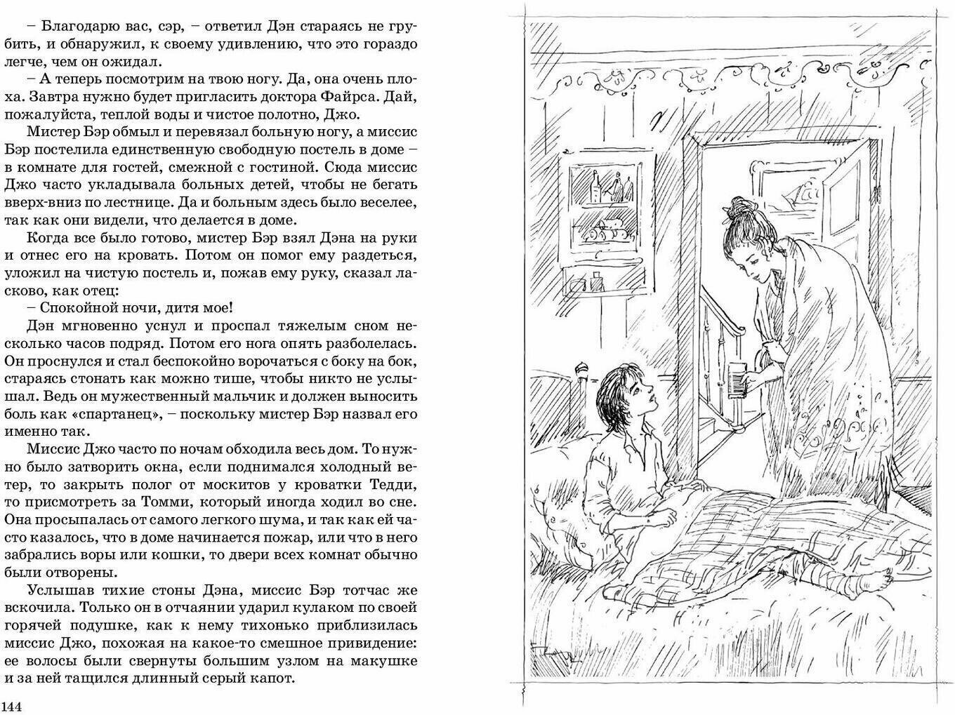 Сентиментальная повесть Луизы Мэй Олкотт формально считается продолжением знаменитой книги «Маленькие женщины». Но на самом деле это полноценное самостоятельное произведение писательницы. Одна из сестер Марч, героинь повести «Маленькие женщины», умудренная опытом, повзрослевшая, открывает частную школу для мальчиков. В ее учебном заведении действуют необычные правила поведения. Вместо зубрежки – захватывающие беседы по душам, а вместо пыльных кабинетов – свежий воздух, смех и движение. Мудрые и любящие наставники ставят целью вырастить из воспитанников настоящих мужчин, привить им честность, мужество, трудолюбие и веру в собственные силы. О такой школе можно только мечтать!