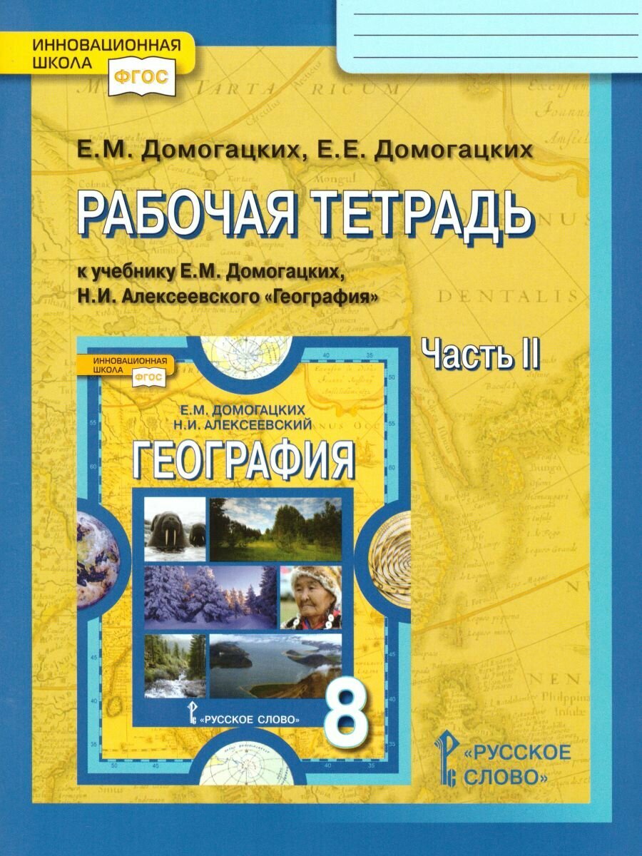 Рабочая тетрадь к учебнику Е М Домогацких Н И Алексеевского География для 8 класса общеобразовательных организаций Часть 2 7-е изд (Домогацких Евгений Евгеньевич); Русское слово, 2020