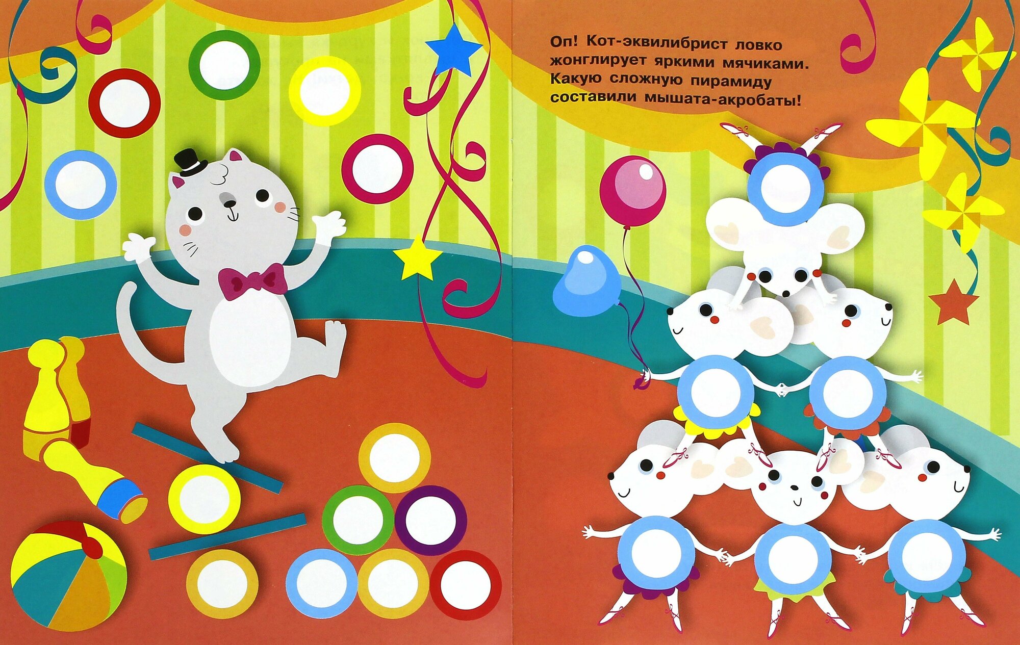 Приклеивая на картинки в этой книге яркие разноцветные многоразовые наклейки - кружочки, ваш малыш сможет повторять названия цветов и предметов, развивать мелкую моторику и усидчивость.