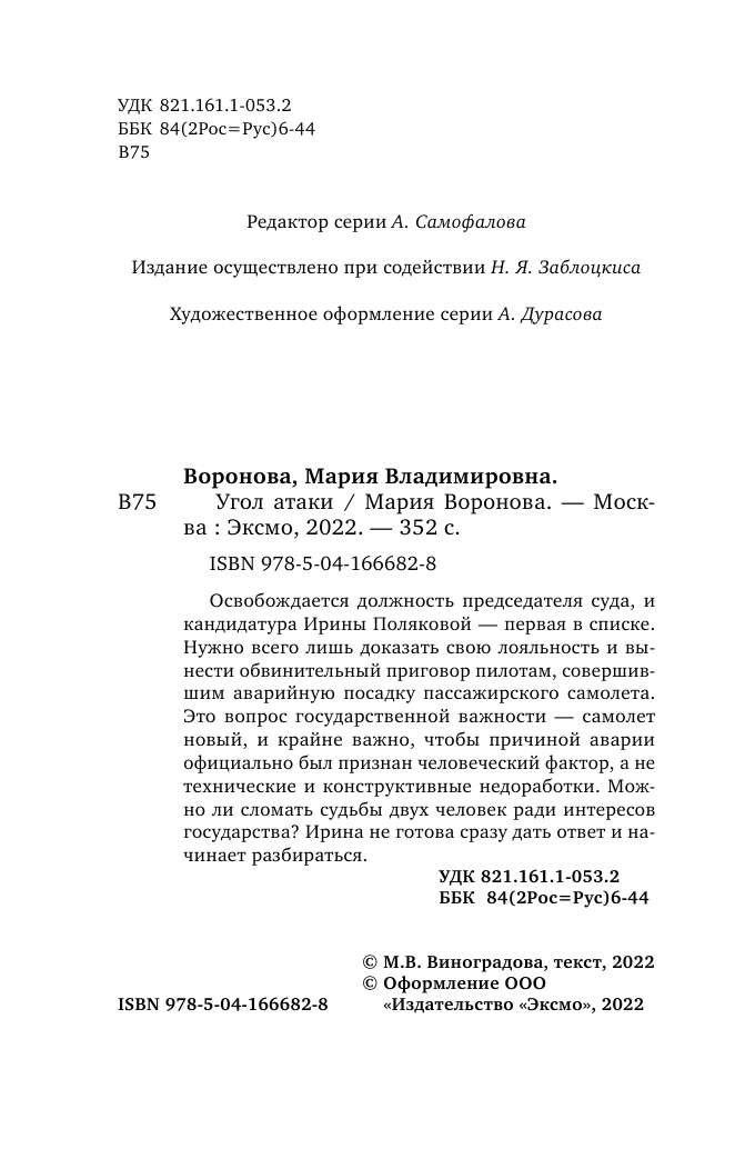 Книга: Угол атаки (Воронова Мария Владимировна); Эксмо, 2022