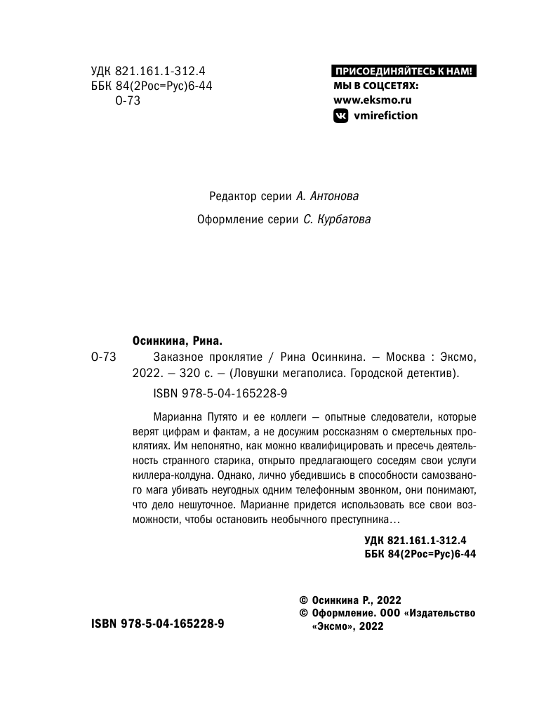Книга: Заказное проклятие (Рина Осинкина); Эксмо, Редакция 1, 2022