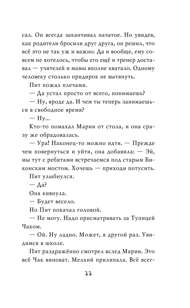 Он всегда заканчивал начатое. Но увидев, как родители бросили друг друга, он решил, что всё это не так уж и важно. Да и вообще, ему совсем не хотелось, чтобы его ещё и тренер доставал — учителей и мамы вполне хватало. Одному человеку столько придирок не вытянуть.