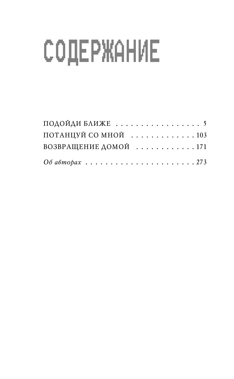 В книгу вошли три повести: «Подойди ближе» (Step Closer), «Потанцуй со мной» ( Dance with Me), «Возвращение домой» (Coming Home).