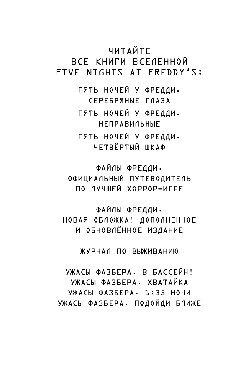 Поэтому, как книга ужастик, этот сборник достоин внимания. Но если вы любитель Фредди, то как сказано ранее, прочтите романы и путеводители!Достоинства: