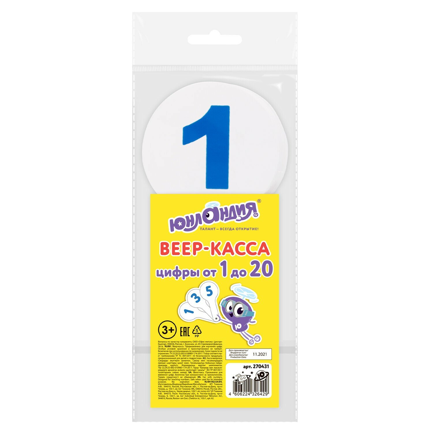 Набор содержит 1 веер с цифрами от 1 до 20. Символы нанесены с двух сторон. Крупный размер и шрифт, качественная печать, устойчив к истиранию. Изготовлен из сертифицированного полипропилена.