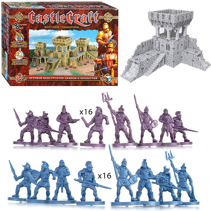 Игровой набор Технолог Castlecraft Восстание Гладиаторов 00335 /4 без сомнения понравится любому ребенку. Развивает творческое мышление и фантазию, тренирует мелкую моторику, расширяет кругозор.Игровой набор-конструктор крепости с фигурками воинов включает различные элементы для сборки крепости и два отряда солдатиков, которым предстоит оборонять и нападать на крепость. Крепость перестраиваемая, собирается без клея, можно собрать как крепость по инструкции, так и собственной конструкции. Данный набор можно использовать в настольных играх, например ролевых играх от Технолога. Также конструктор дополняется благодаря другим наборам миниатюр от Технолога.
