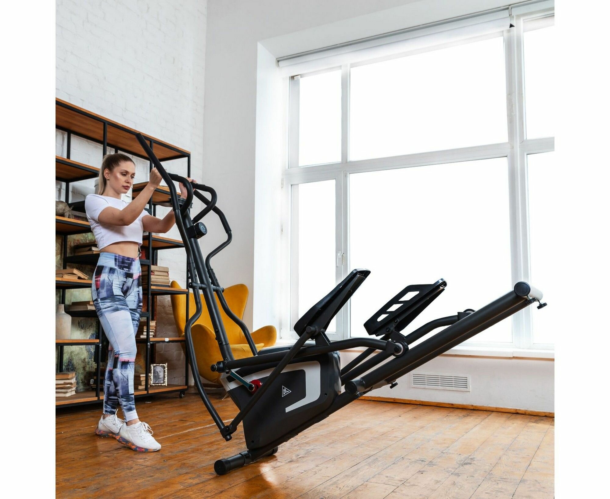 Небольшие размеры (143 x 59 x 159 см) и малый вес (38 кг) тренажёра способствуют простому и быстрому перемещению. Для этого имеются транспортировочные ролики. Чтобы изменить место расположения тренажёра, достаточно его наклонить и переместить за поручни. Есть разборные элементы для удобства хранения. Все необходимые инструменты для сборки и разборки тренажёра входят в комплектацию.